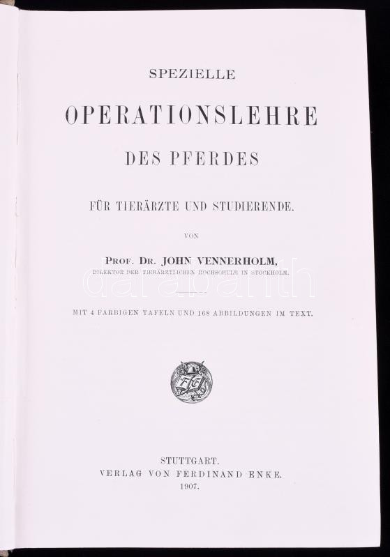 Description: John Vennerholm: Spezielle Operationslehre des Pferdes für Tierärzte und Studierende. Stuttgart, 1907, Verlag von Ferdinand Enke. Német nyelven, sok illusztrációval és ábrával. Egészvászon-kötés, tulajdonosi bélyegzővel.