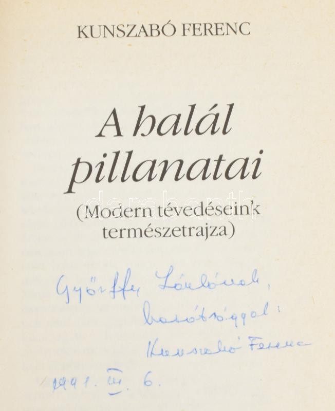 Kunszabó Ferenc: A halál pillanatai. A szerző Kunszabó Ferenc (1932-20... https://www.darabanth.com/en/510-Online-auction/510.0/Books/Books-Other-rarities~785/Kunszabo-Ferenc-A-halal-pillanatai-A-szerzo-Kunszabo-Ferenc-1932-2008-iro-szociografus-C3~II3455938