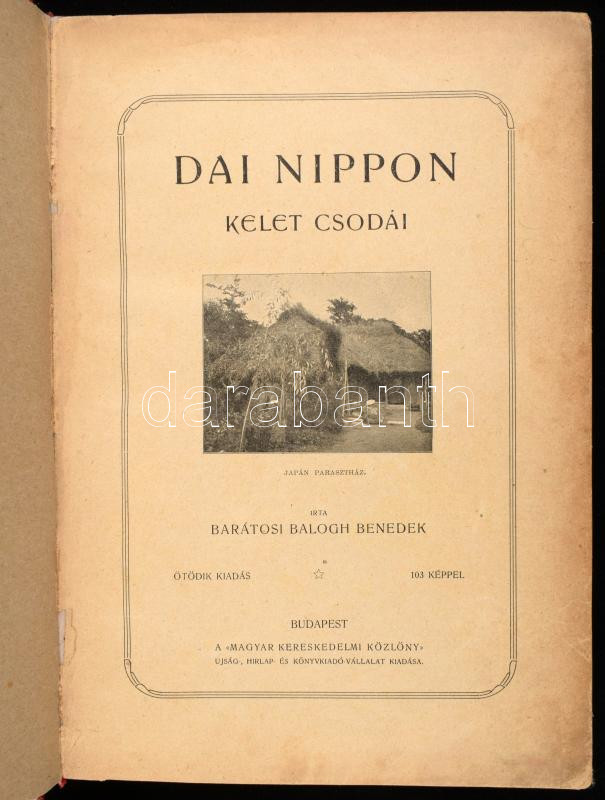 Barát[h]osi Balogh Benedek (1870-1945) néprajzkutató, Ázsia-utazó, őstörténeti író. Kőrösi Csoma Sándor munkássága által inspirált, 1903-1904-ben lezajlott első kelet-ázsiai néprajzi útján elsősorban a magyarság keleten maradt testvérnépeit kívánta felkutatni, ám szibériai-mandzsúriai-japán-kínai utazása pont arról győzte meg, hogy a magyarságnak nincs kelet-ázsiai maradványa. Ám útja során a japánságban egy nagy múltú és nagyra hivatott, katonai erényei miatt testvérinek is tekinthető népet ismert meg, amely nem utolsósorban a magyar politikai szorongások állandó tényezőjét, Oroszországot is képes volt megregulázni túlterjeszkedésében. Az útleírás oroszországi és szibériai részében a szerző elidőz az orosz belviszonyok rettenetességén, majd ezt szembe állítja a japán mindennapok világával, amely még furcsaságaiban is magas kultúráról árulkodik. A szerző néprajzi megfigyelésekben és politikai kommentárokban gazdag útleírásának hirtelen véget vet az 1904-1905-ben lezajlott orosz-japán háború: a szerző tengeri úton, Ázsia megkerülésével tért haza Európába, ám nem titkolta örömét az időközben befejeződött háború végkimenetelén (a háború japán győzelemmel zárult). A munka első három kiadása 1906-ban jelent meg, példányunk a lényegesen díszesebb és nagyobb formátumú második kiadásból való. Az oldalszámozáson belül számos felvétellel illusztrált kötet szövegközti grafikáit a szerző felesége készítette. Modern vászonkötésben