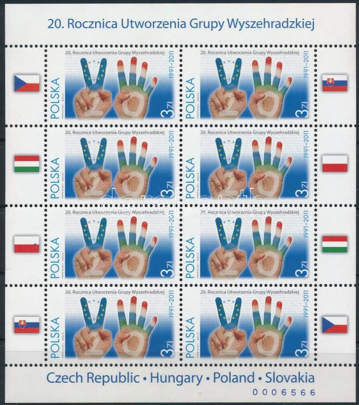 2011 A Visegrádi Csoport 20. évfordulója kisív Mi 4507