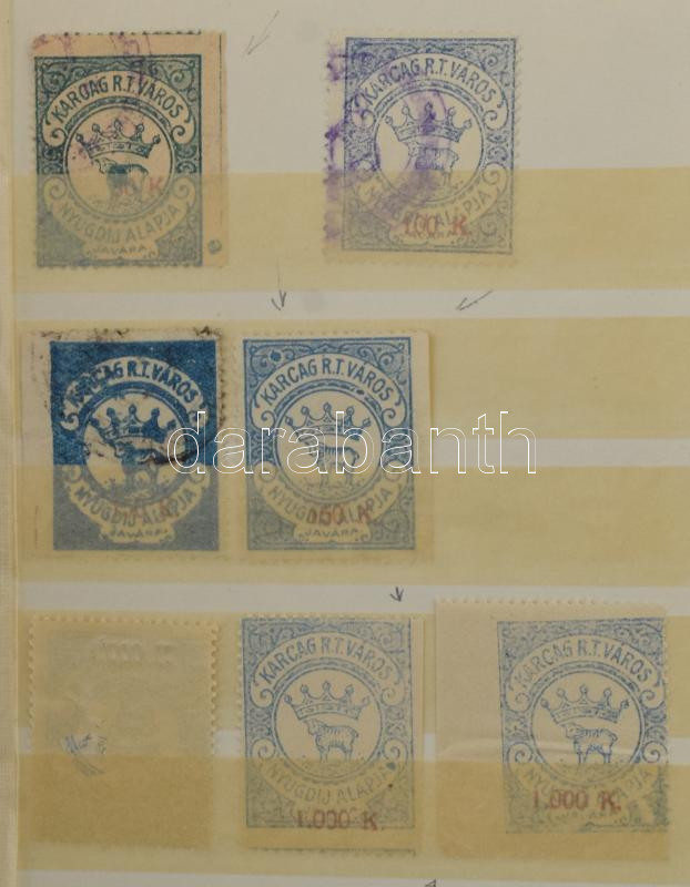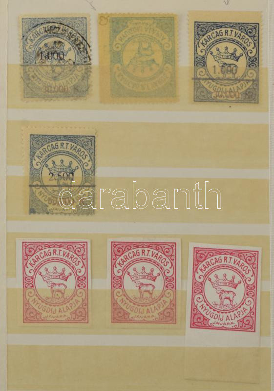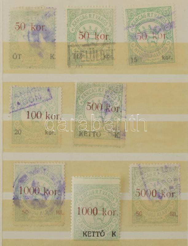 https://www.darabanth.com/en/510-Online-auction/510.0/Hungarian-philately-and-postal-history/Document-Stamps~801/Karcag-varosi-okmanybelyegek-gyujtemenye-kis-berakoban-84-db-kozte-kulonlegessegek-valt~II3454972