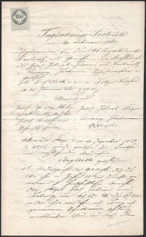 ca 1860 3 db Tagfalzungs-protocoll illetékbélyeggekkel