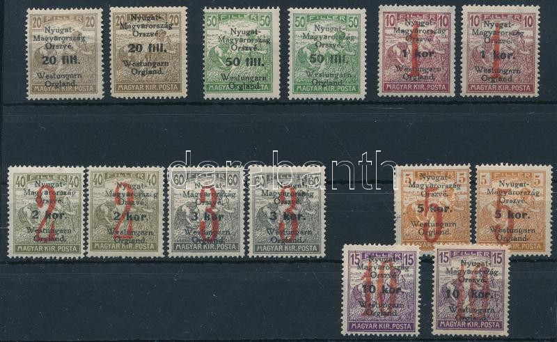 Nyugat-Magyarország VI. 1921 2 db sor, közte 20f hármaslyukasztással (7.600)