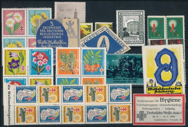 Vegyes német nyelvű levélzáró összeállítás stecklapon, közte karácsonyi témájúak, reklámok