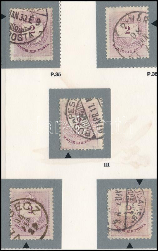 1881 5 db 2kr II. típus vésésjavításokkal, lemezhibákkal, nagyon ritka (ex Orbán, Sebestyén aranyérmes kiállítási anyagból)