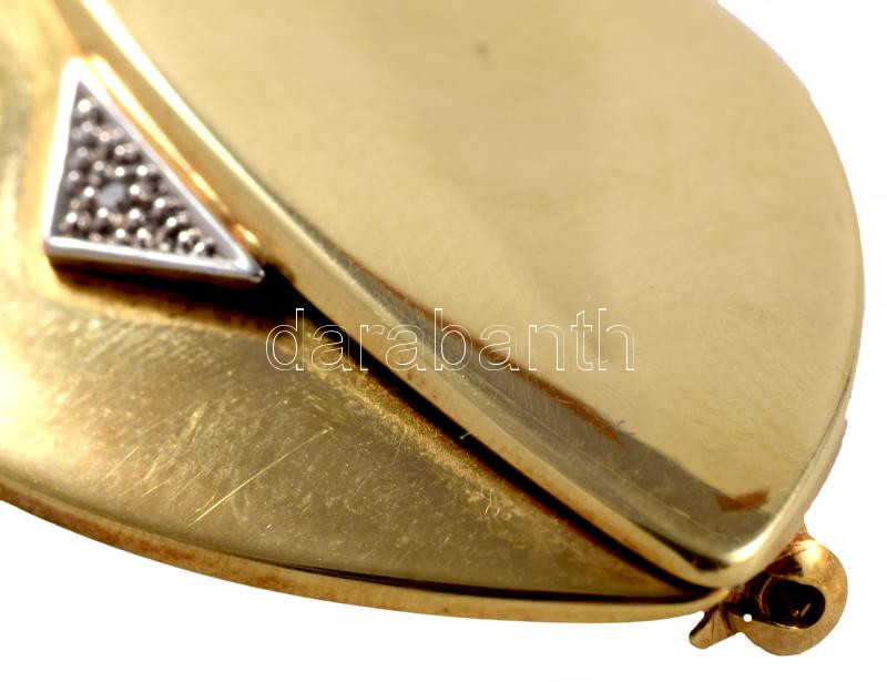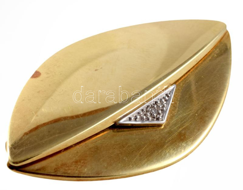 Arany (Au) bross, kő rárakásokkal, jelzett, 45x25mm, bruttó 6,2g