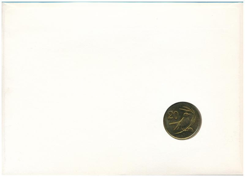 Cyprus 1983. 20 Cents in coin envelope with stamp and cancellation, with German description C:UNC