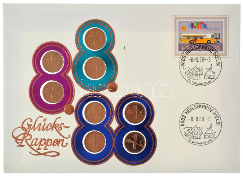 https://www.darabanth.com/en/510-Online-auction/510.0/Numismatics/Envelopes-with-Coins-and-Banknotes~688/Svajc-1984-1r-bronz-8x-Szerencselevel-8888-Heiligkreuz-felbelyegzett-boritekon-alkal~II3417208