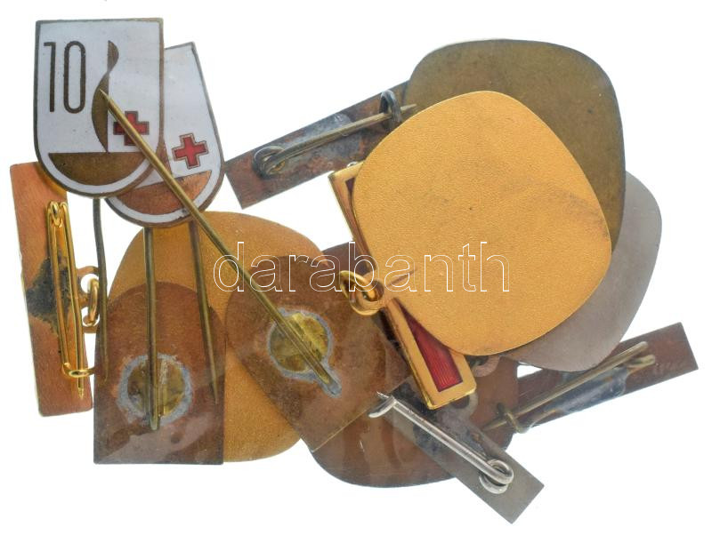 DN(~1970) "5" + "10" + "15" + "20" véradás után járó zománcozott fém jelvény (4xklf), (13x19mm) + DN(~1970) "10" + "15" + "20" + "30" + "50" véradásért járó műgyantás bronz / ezüstözött bronz / aranyozott bronz jelvény, függelékkel (5xklf), (25x35mm) T:AU,XF