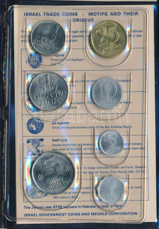 https://www.darabanth.com/en/510-Online-auction/510.0/Numismatics/Foreign-Coin-sets~700/Izrael-1979-1a-5L-7xklf-forgalmi-sor-mubor-tokban-TUNC3Cbr-3E-Israel-1979-1-Agora-5-Lirot-~II3454503