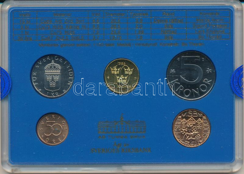 Description: Svédország 1993. 50ö - 10K (4xklf) forgalmi sor műanyag tokban, emlékéremmel T:UNC