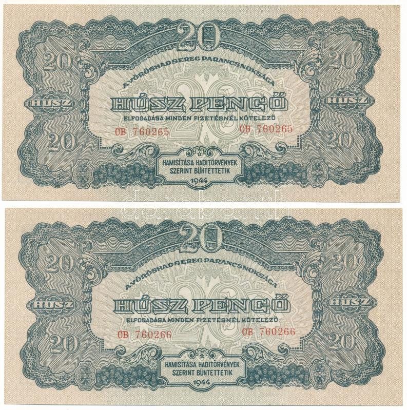 1944. 20P "A Vöröshadsereg Parancsnoksága" (2x) sorszámkövetők "CB 760265 - CB 760266" T:XF
