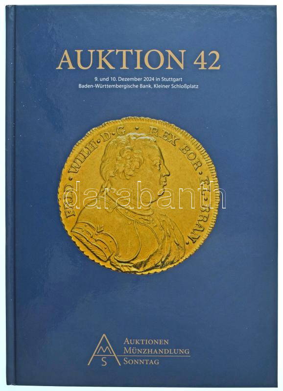 Description: Auktionen Münzhandlung Sonntag - Auktion 42 - 9. und 10. Dezember 2024 in Stuttgart . Német nyelvű keménytáblás árverési katalógus, kiváló állapotban / German auction catalogue in great condition.