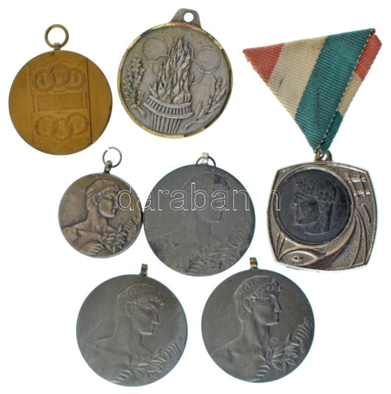 Vegyes, 7db-os koszorús / portrés-babérágas tematikájú díjérem tétel, közte 1974. "Belvárosi Kupa - Csapat - II." fém díjérem mellszalagon T:XF,VF