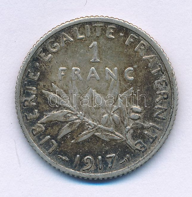 https://www.darabanth.com/en/510-Online-auction/510.0/Numismatics/Worldwide-silver-and-metal-coins~699/Franciaorszag-1917-1Fr-Ag-TVF-F-patina3Cbr-3E-France-1917-1-Franc-Ag-CVF-F-patina3Cbr-3E-Krause~II3450010