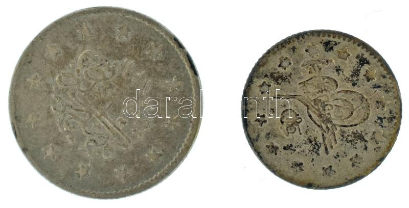 Description: Oszmán Birodalom 1293(1907) 1k Ag "II. Abdul Hamid" + 2k Ag "II. Abdul Hamid" T:XF,VF, patina