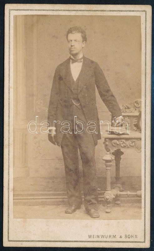 1875 Bőrkesztyűt viselő elegáns úr portréja, vizitkártya Weinwurm és Fia budapesti műterméből, a hátoldalon datálva, kissé foltos, 10,5x6 cm