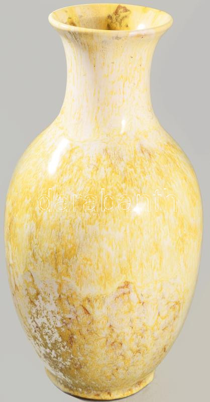 Sárga-fehér mázas kerámia váza, számozott, hibátlan, m: 32 cm