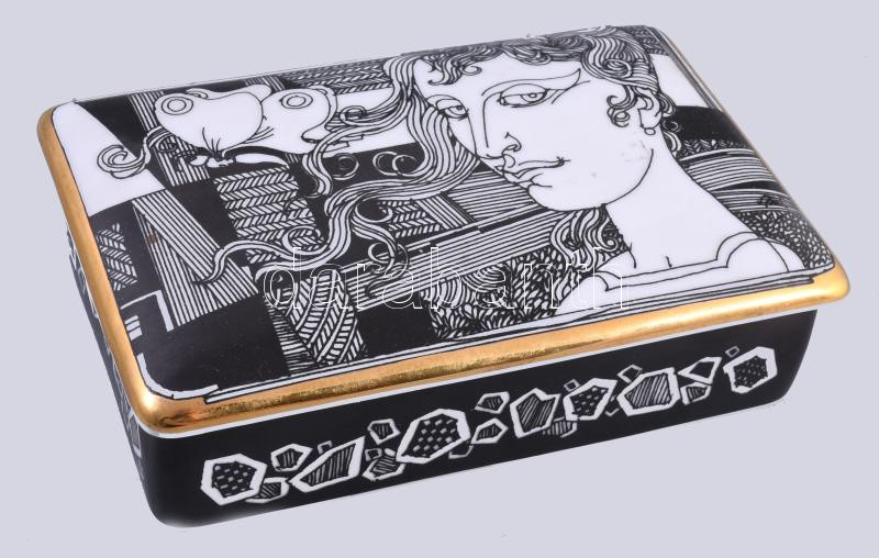 Hollóházi Szász Endre által tervezett mintával díszített bonbonier. Ma...