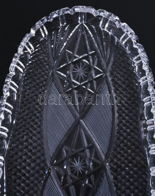 Parádi csiszolt ólomkristály üvegtálca, gazdag díszítéssel, jelzés nélkül, hibátlan, 44x18 cm