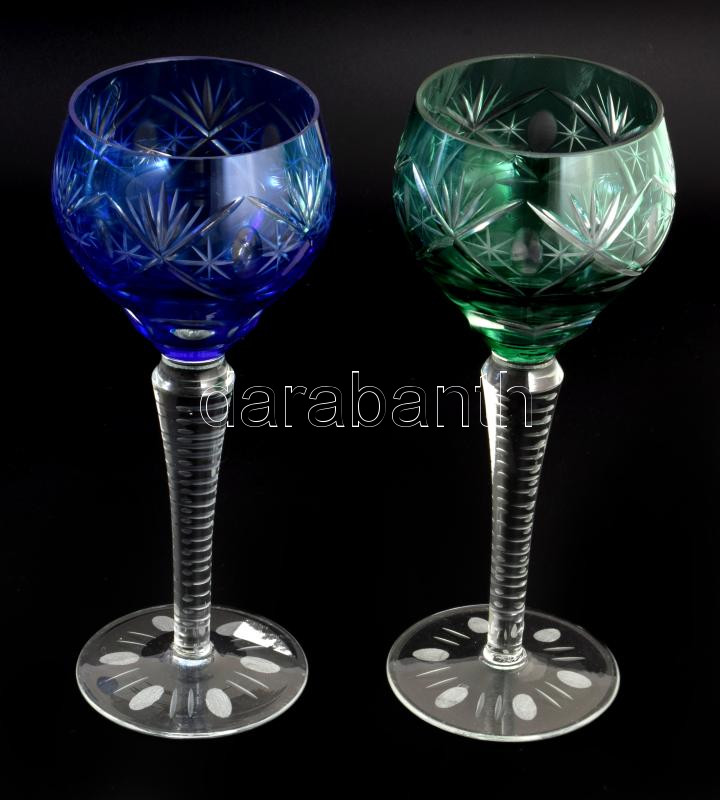 Színezett ólomkristály talpas pohár készlet. II. osztályú (gyári anyag...