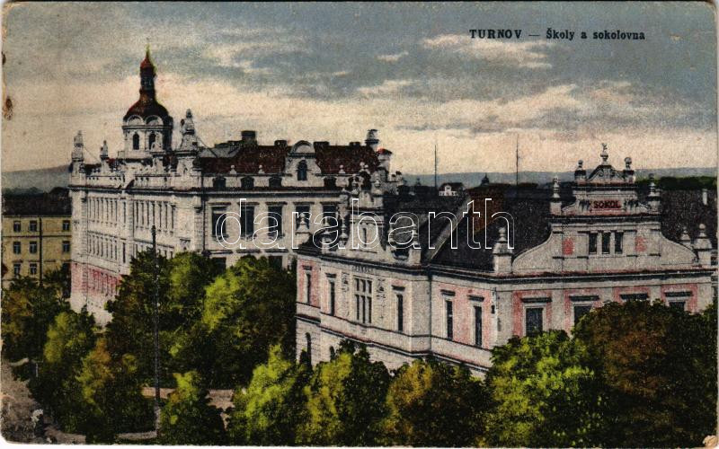 Turnov, Turnova nad Jizerou, Turnau; Skoly a sokolovna / school (small tear)