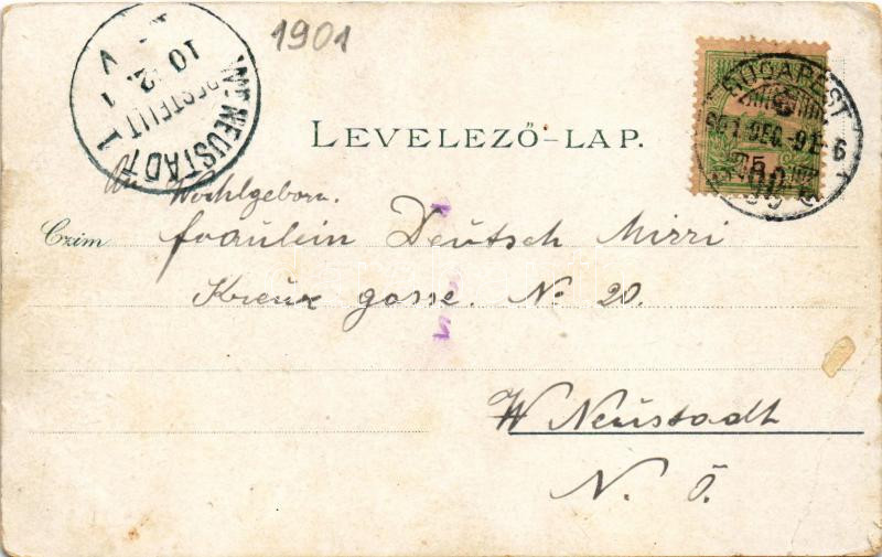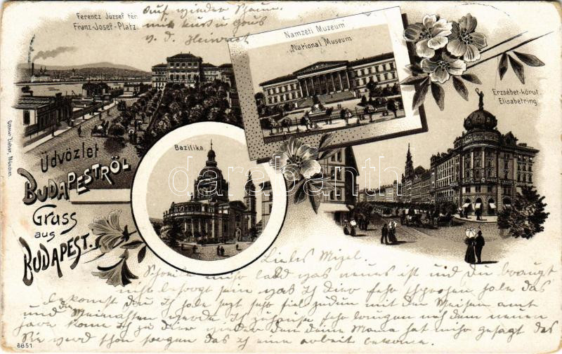 1901 Budapest, Ferenc József tér, Nemzeti Múzeum, Bazilika, Erzsébet körút. Ottmar Zieher Art Nouveau, floral, litho (EB)