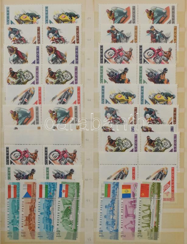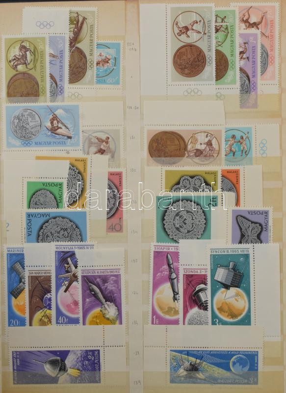 1958-1989 Gyűjtemény sorokkal, másodpéldányokkal, közte sok ívszéli / ívsarki kiadás, összefüggések is, 16 lapos A/4 berakóban