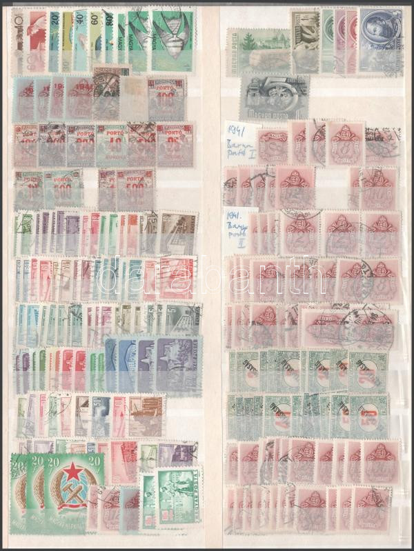 Kis magyar tétel kétoldalas nagyalakú berakólapon, közte portó bélyegek és többlet példányok