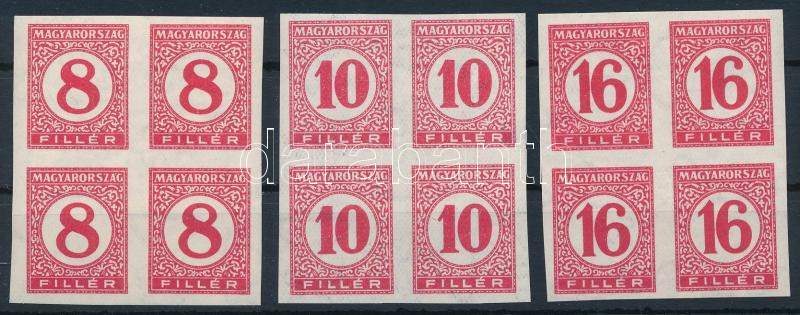 1929 Pengő-filléres portó II. 3 értékes vágott sor vékony papíron négyestömbökben (60.000)