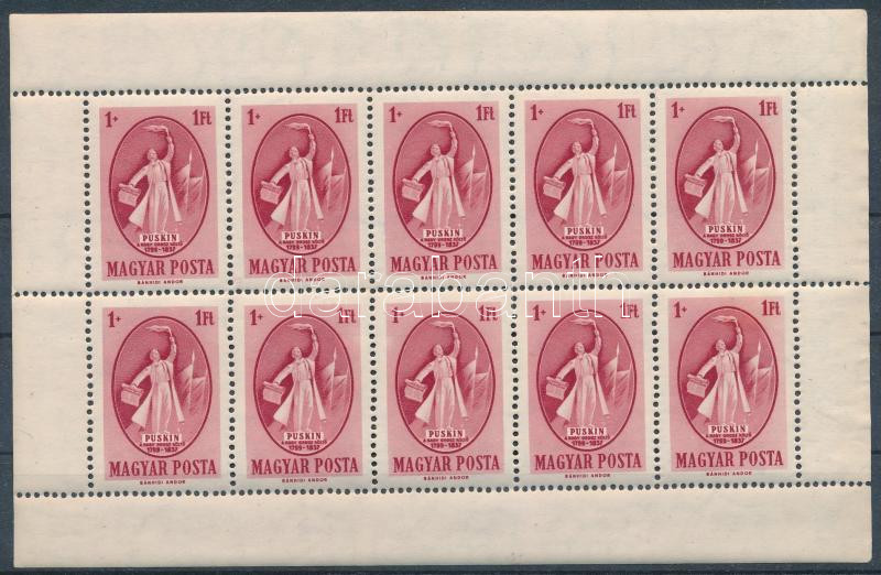 1947 Puskin tízes ív végigfutó fogazással (80.000)
