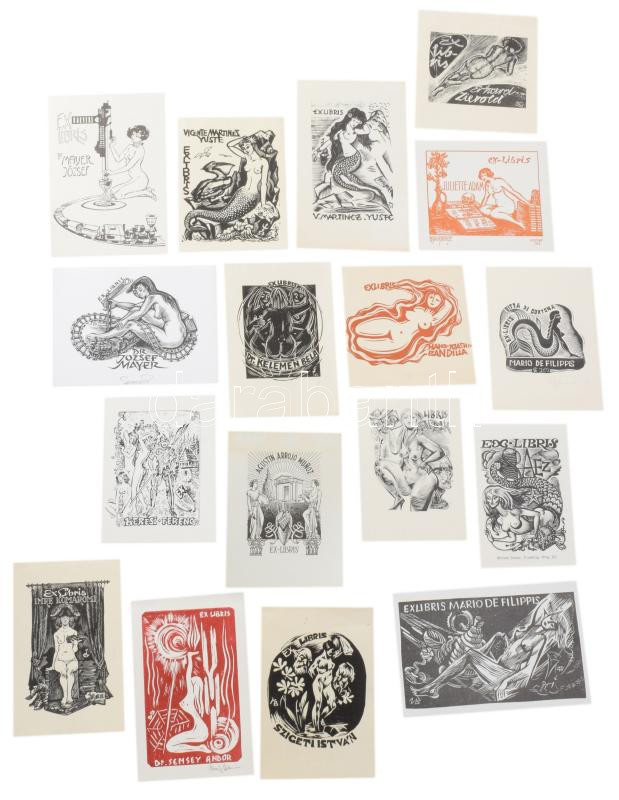 Description: Klf. magyar és külföldi alkotók (Zórád Ernő, Trojan Marian József stb.): 17 db erotikus ex libris és kisgrafika. Klf. technikák, papír, részben jelzett, klf. méretekben.