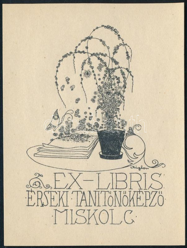 Sassy Attila (1880-1967): Ex libris Érseki Tanítónőképző Miskolc. Klis...