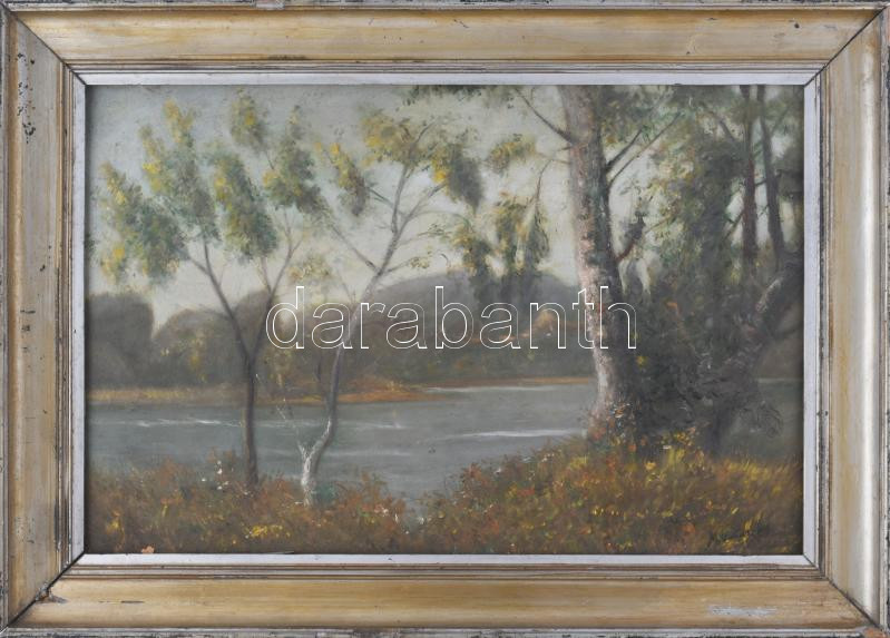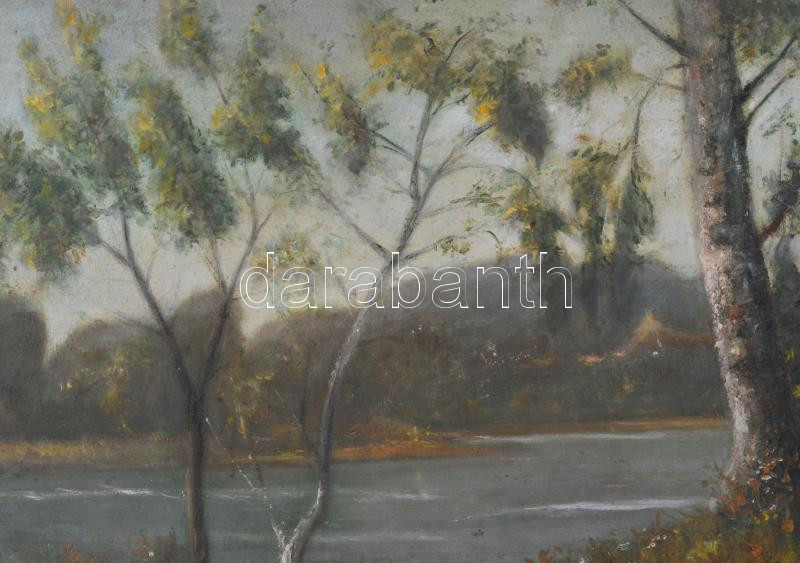 Mednyánszky jelzéssel: Vízparti táj. Olaj, farost, 33×49 cm. Dekoratív, sérült fakeretben.