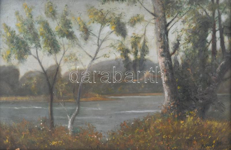 Mednyánszky jelzéssel: Vízparti táj. Olaj, farost, 33×49 cm. Dekoratív...