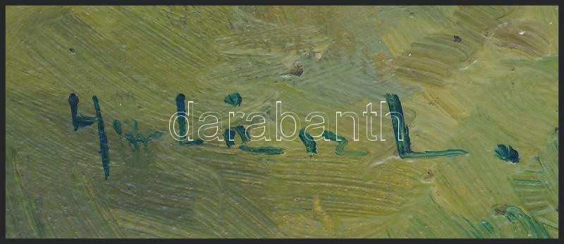 Olvashatatlan (Lukács L.?) jelzéssel: Virágba borult táj. Olaj, karton...
