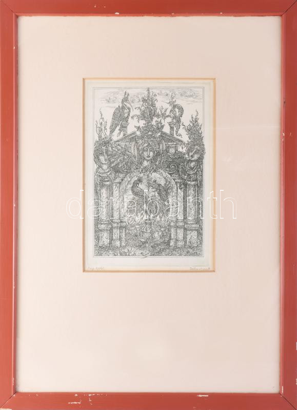 Balla Margit (1947-): Régi kert I. Rézkarc, papír, jelzett. Üvegezett ...