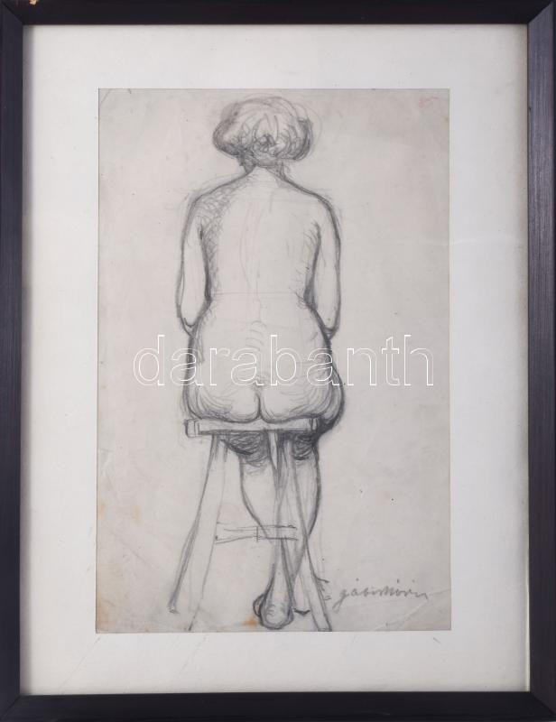 Gábor Móric (1889-1987): Ülő női hátakt. Ceruza, papír, jelzett, üvege...