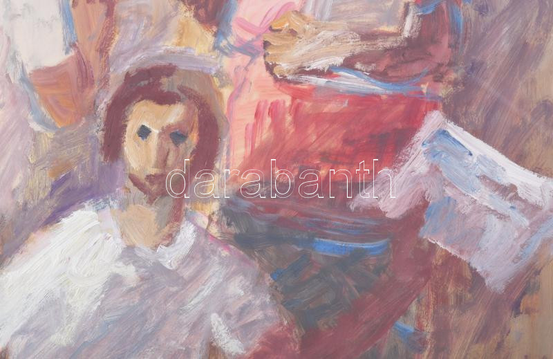 Gádor Emil (1911-1998): Újság. Olaj, papír, jelzett. Üvegezett, dekora...