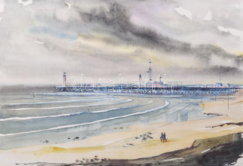 Gebhardt Béla (1901-1990): Ostende, 1958. Akvarell, papír, Jelzett. Pa...