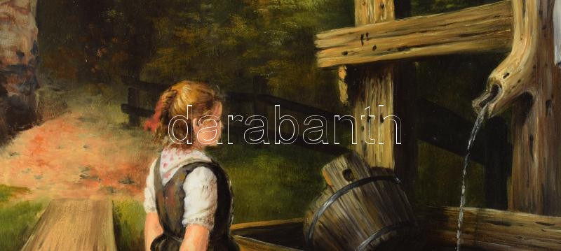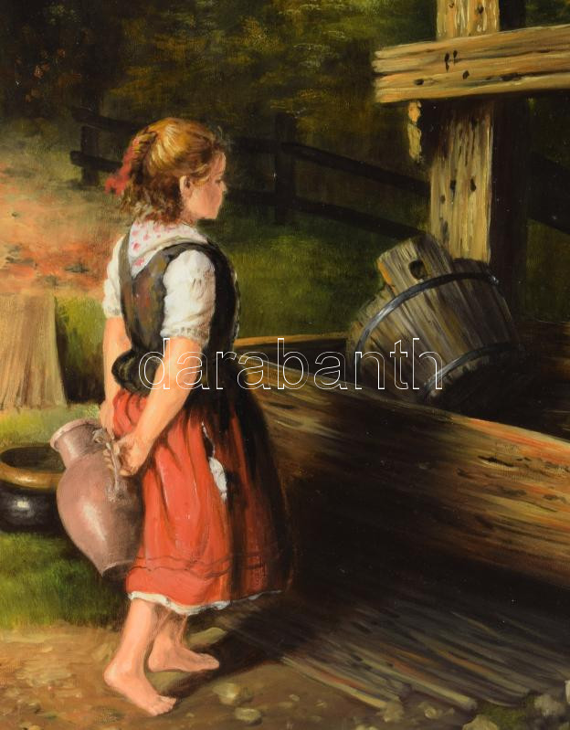 Madarász Gábor (1964-): Kislány a kútnál. Olaj, farost. Jelzett. Dekor...