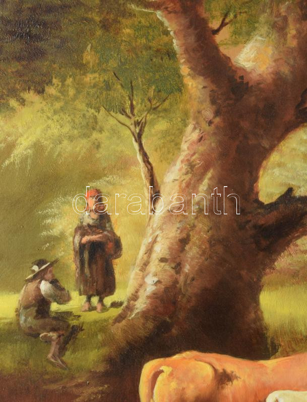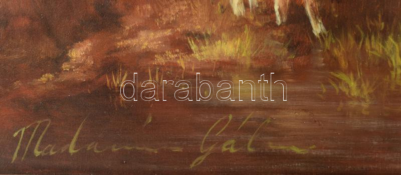 Madarász Gábor (1964-): Tehénitatás. Olaj, farost. Jelzett. Dekoratív ...