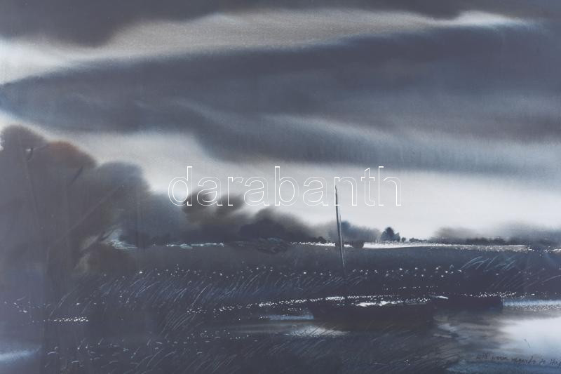 Paresh Maity (1965-), indiai festő: Felhős táj. Akvarell, papír, jelze...