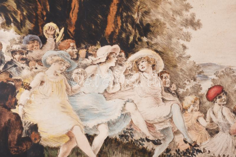 Prihoda István (1891-1965): Társaság. Színezett rézkarc, papír, jelzet...