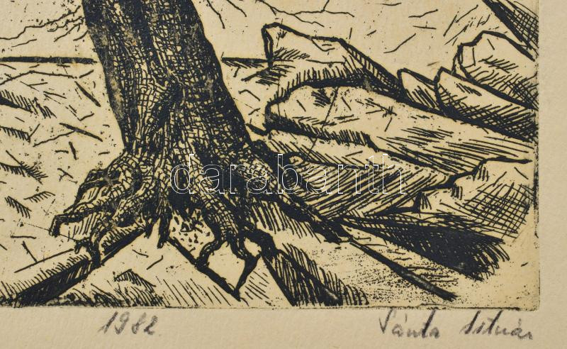 Sánta István (1957-): Életet! (1982). Rézkarc, papír. Jelzett. 29×20 c...