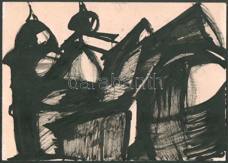 Somlai Vilma (1938-2007): Utcarészlet. Tus, papír, a hátoldalán a művé...