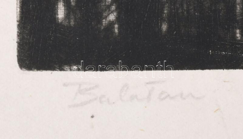 Szennik György (1923-2007): Balaton. Rézkarc, papír, jelzett. Kartonra kasírozva. Lapszéli elszíneződésekkel. 14×21 cm