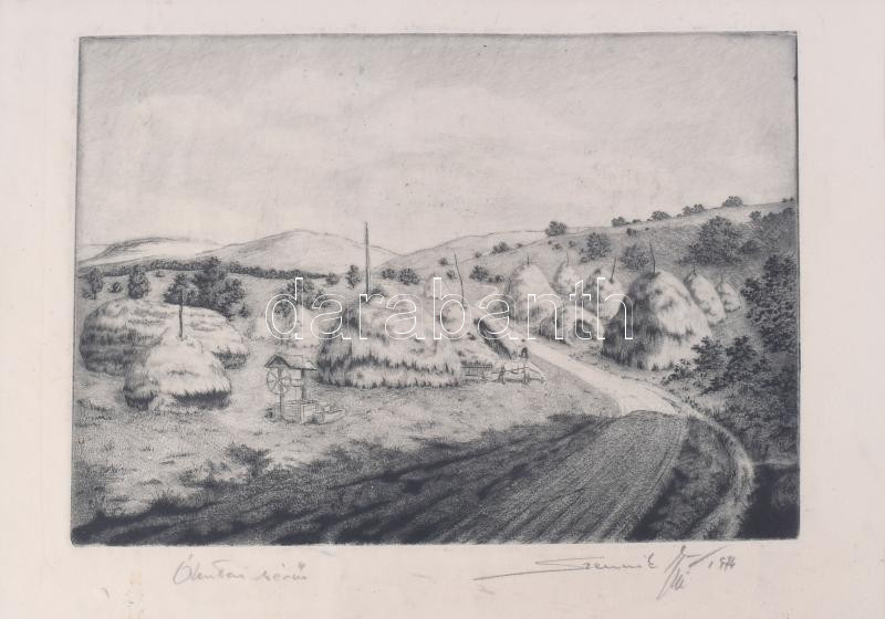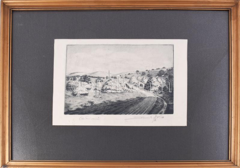 Szennik György (1923-2007): Óhutai szérű. Rézkarc, papír, jelzett, 23×...