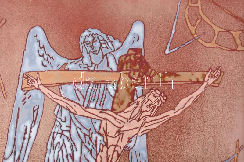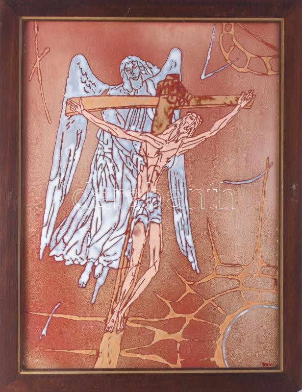 Tóth Szvetlana (1949-): Jézus és Angyal. Tűzzománc, fém alapon, jelzet...