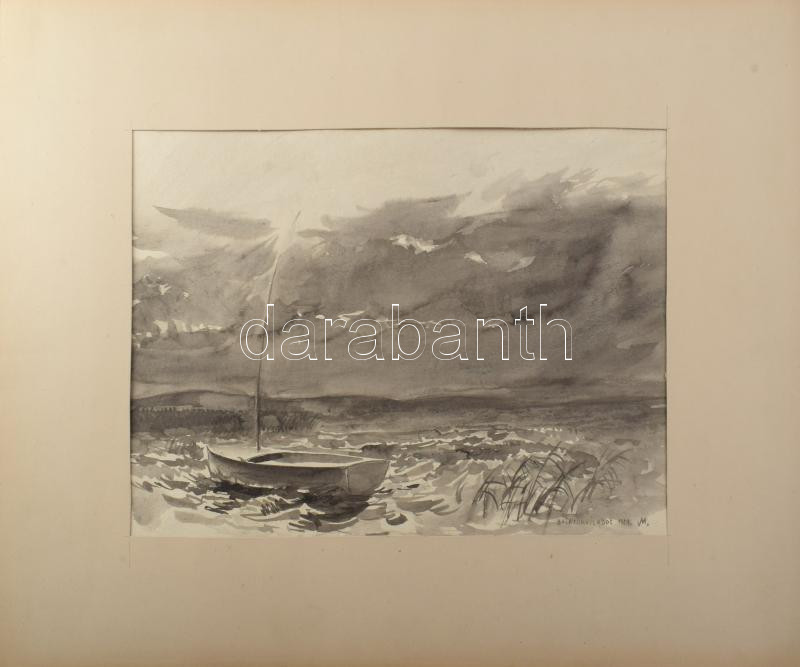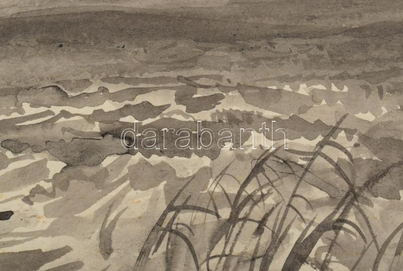 Varga Mátyás (1910-2002): Balatonvilágos (Vihar készül), 1954. Lavírozott tus, papír, jelzett, paszpartuban, 30×40 cm